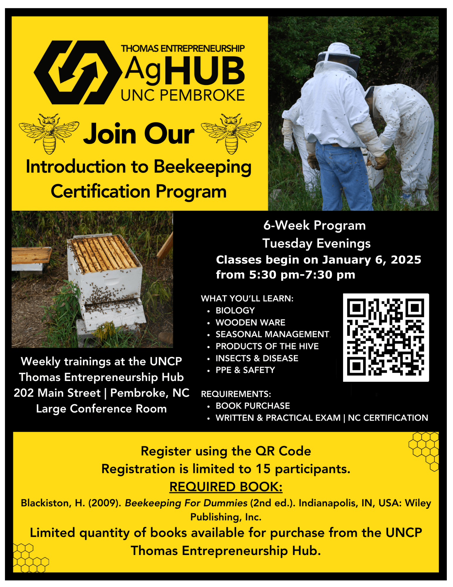Agricultural training and certification programs are offered through the Thomas Entrepreneurship HUB. These programs are voluntary and aim to educate and provide certifications to local farmers on food safety and safe handling practices (GAP), sustainable agriculture, and beekeeping.